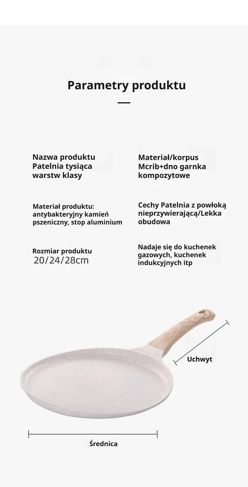 Płaskodenna patelnia do naleśników z kamienia pszenicznego, zdrowa i trwała